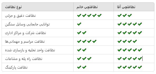 مقایسه عملکرد نظافتچی خانم و نظافتچی آقا
